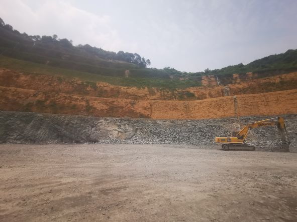寧?h躍龍街道元峰村下大山建筑用石料(凝灰?guī)r)礦的采礦權(quán)人為寧波眾鼎建材有限公司,于2016年9月8日取得采礦許可證。礦山位于寧?h躍龍街道元峰村,山坡露天開采。該礦山開采礦種為建筑用石料(凝灰?guī)r),采礦許可證核定的生產(chǎn)規(guī)模為38.6萬m3/年,開采深度+219m~+57m,礦區(qū)面積0.1411km2。礦山的開采方式為露天開采,采用自上而下分層、分臺(tái)階開采、潛孔鉆穿孔,深孔爆破,挖掘機(jī)、鏟裝機(jī)裝車,汽車運(yùn)輸?shù)牟傻V方法。