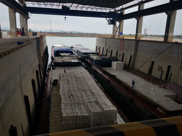 衢州港衢江港區(qū)大路章作業(yè)區(qū)位于衢州市衢江區(qū)樟潭街道內(nèi),北臨衢江,南至320國道,西起上山溪,東至下山溪,位于安仁鋪樞紐的下游,已建高安大橋的上游。該衢江港區(qū)大路章作業(yè)區(qū)一期工程由浙江數(shù)智交院科技股份有限公司進(jìn)行設(shè)計,于2021年12月竣工驗(yàn)收,同時取得1~13號泊位的港口經(jīng)營許可證(浙衢港經(jīng)證0007號),包括500噸級泊位13個(按1000噸級設(shè)計),其中1~5號為散貨泊位、6~9號為多用途泊位、10~11號為全天候泊位、12~13號為散貨泊位,配套建有散貨堆場、件雜貨堆場、重箱堆場、簡易堆場、倉庫、全天候倉庫、生產(chǎn)生活輔助用房等,現(xiàn)已正常運(yùn)營。該工程年設(shè)計吞吐量330萬噸,設(shè)計年通過能力358萬噸,使用港口岸線長708m,總占地面積236113.6m2。