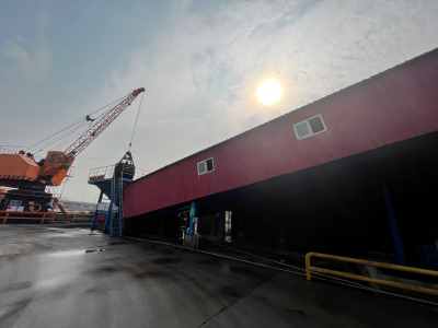 該碼頭使用港口岸線758m,設(shè)計年通過能力150萬噸,共設(shè)300噸級非深水岸線泊位6個,其中煤炭泊位1個(3#泊位)、PTA泊位3個(1#、5#、6#泊位)、乙二醇泊位2個(2#、4#泊位)。