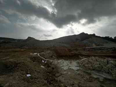 臺州市路橋區(qū)峰江街道西山廢棄礦山生態(tài)修復工程建筑用石料(花崗巖)礦原來設立的排土場總庫容3.63萬m3,現(xiàn)堆土場已堆存土、濾泥約1.6萬m3,剩余可堆放量約2萬m3。礦山年產(chǎn)濾泥約105.6萬噸(按目前生產(chǎn)規(guī)模計算),遠遠大于現(xiàn)排土場剩余堆放量。原堆土場已無法容納礦山剝離土和礦石加工時產(chǎn)生的大量濾泥(濾餅)。通過現(xiàn)場調查,為解決濾泥出路,擬對原排土場進行擴建,排放制砂產(chǎn)生的濾泥。